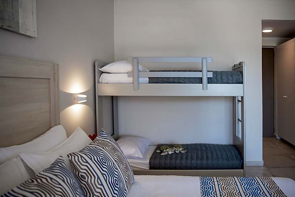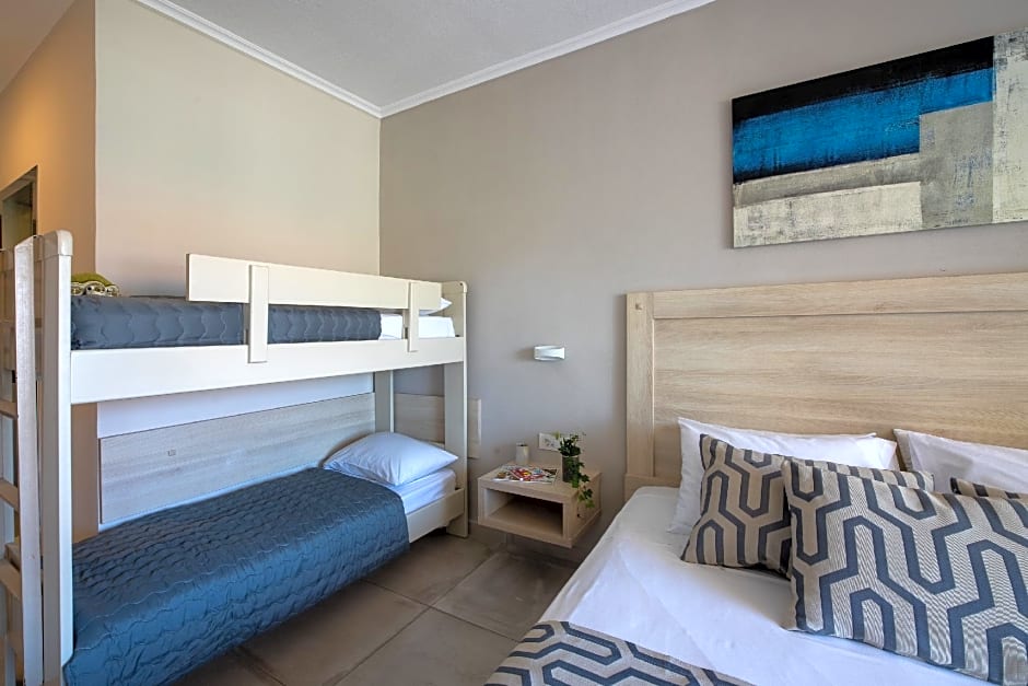 This family room features a private balcony, airconditioning, and tile/marble floor. It has a flat-screen TV, an electric kettle, and bathrobes.